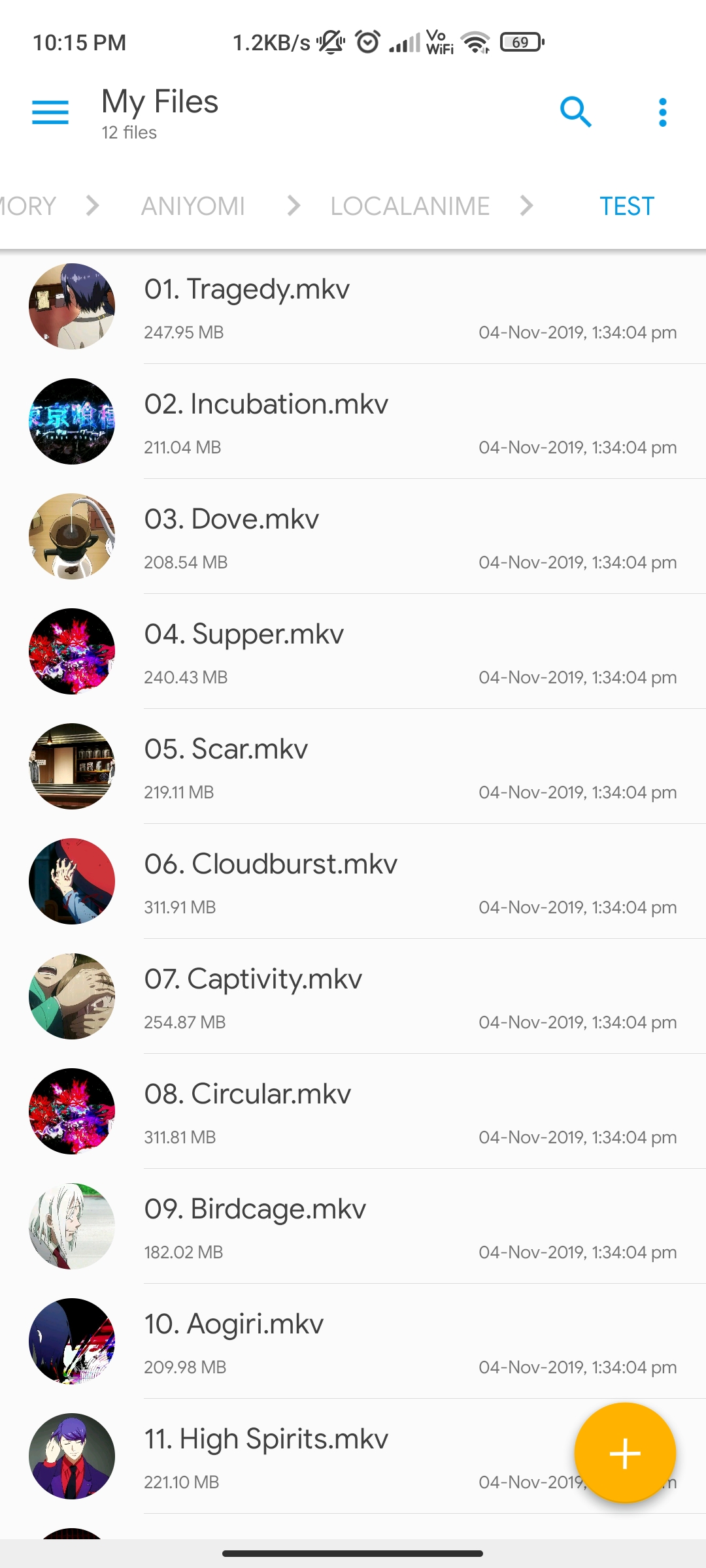 Here, the anime name is test so the file structure is /Aniyomi/localanime/test/episodes.