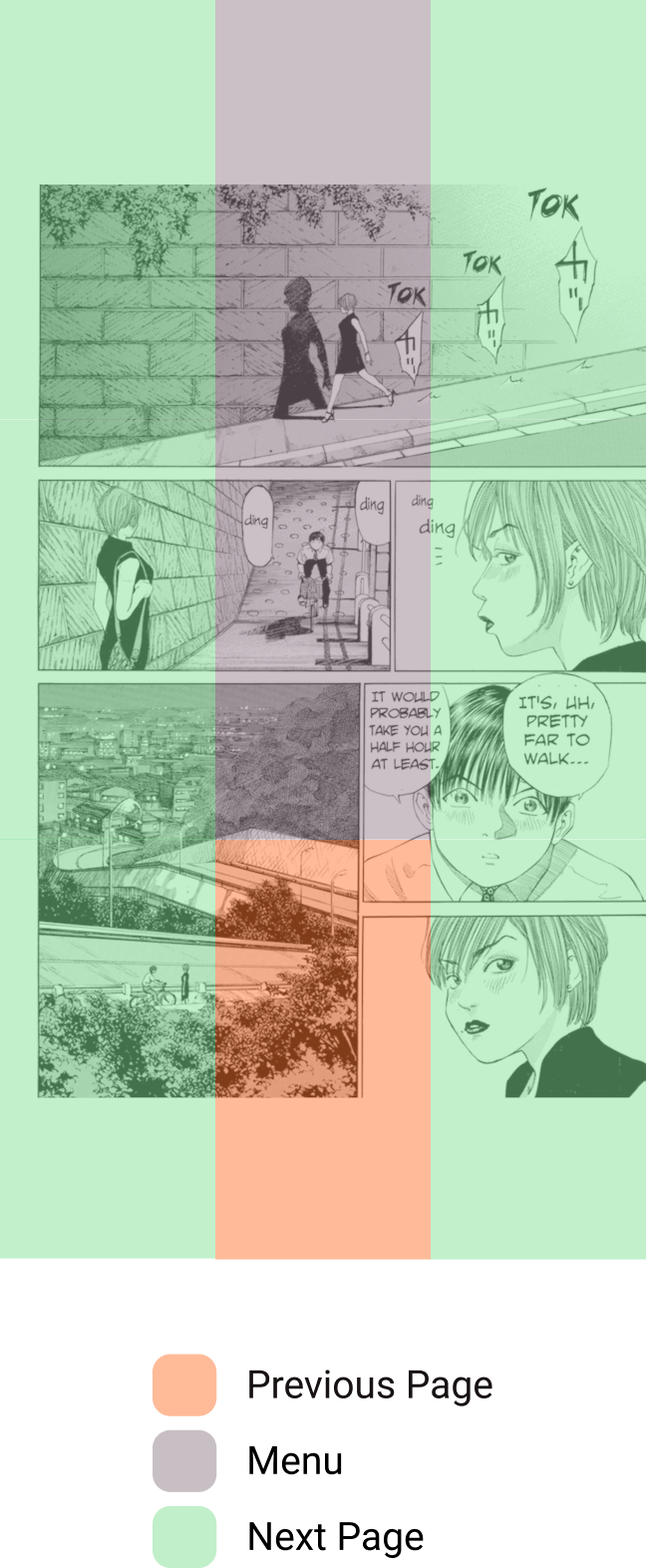 - Tapping bottom goes to the next page, and tapping top goes to the previous page