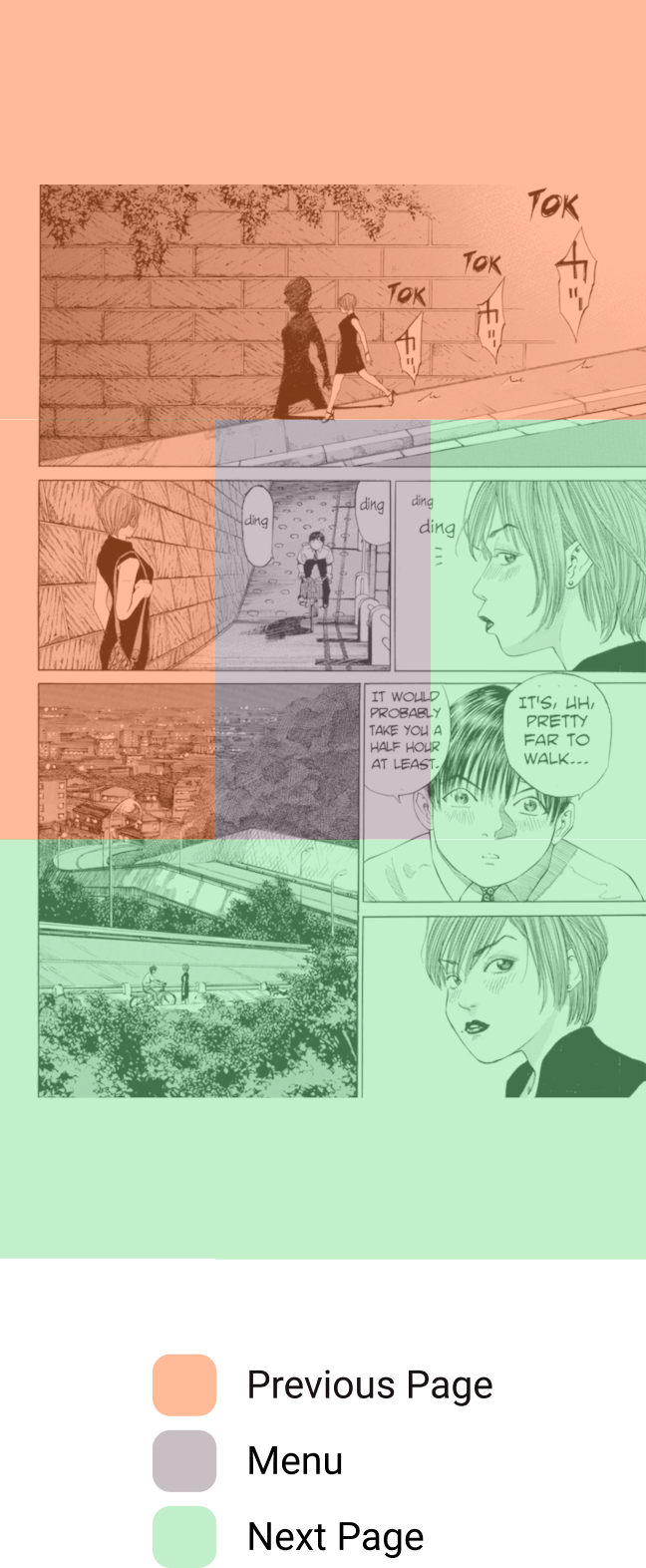 - Swipe right for next page. Swipe left for previous page. Default way of reading Manga.